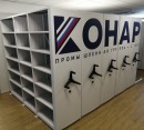 Усиленная рама делает возможным применение в качестве каркасной части не только архивных стеллажей, но и конструкций для склада, для хранения картин, музейных экспонатов. На данной раме реализуется вариант конструкции стеллажей с электроприводом.