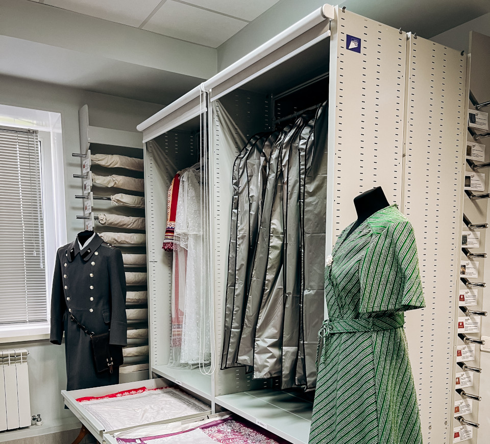 Изготовим передвижные стеллажи для хранения одежды на складе или в фондах музея с доставкой с завода производителя в города Томской области и России.